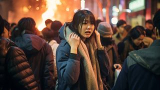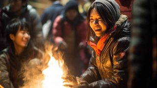 夜の都会で、キャンプファイヤをする女子 茨城県 守谷市 ストリートスナップ