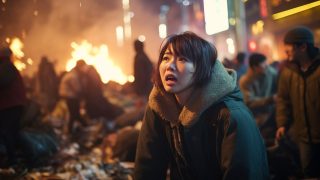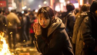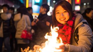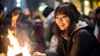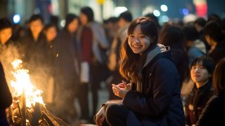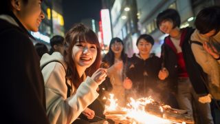 夜の都会で、キャンプファイヤをする女子 大阪府 河内長野市 ストリートスナップ