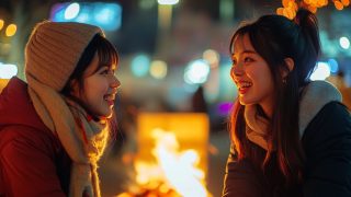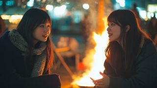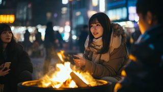 夜の都会で、キャンプファイヤをする女子 鳥取県 米子市 ストリートスナップ