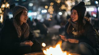 夜の都会で、キャンプファイヤをする女子 京都府 宇治市 ストリートスナップ