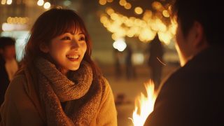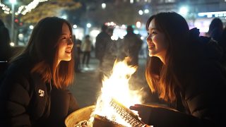夜の都会で、キャンプファイヤをする女子 埼玉県 加須市 ストリートスナップ