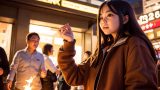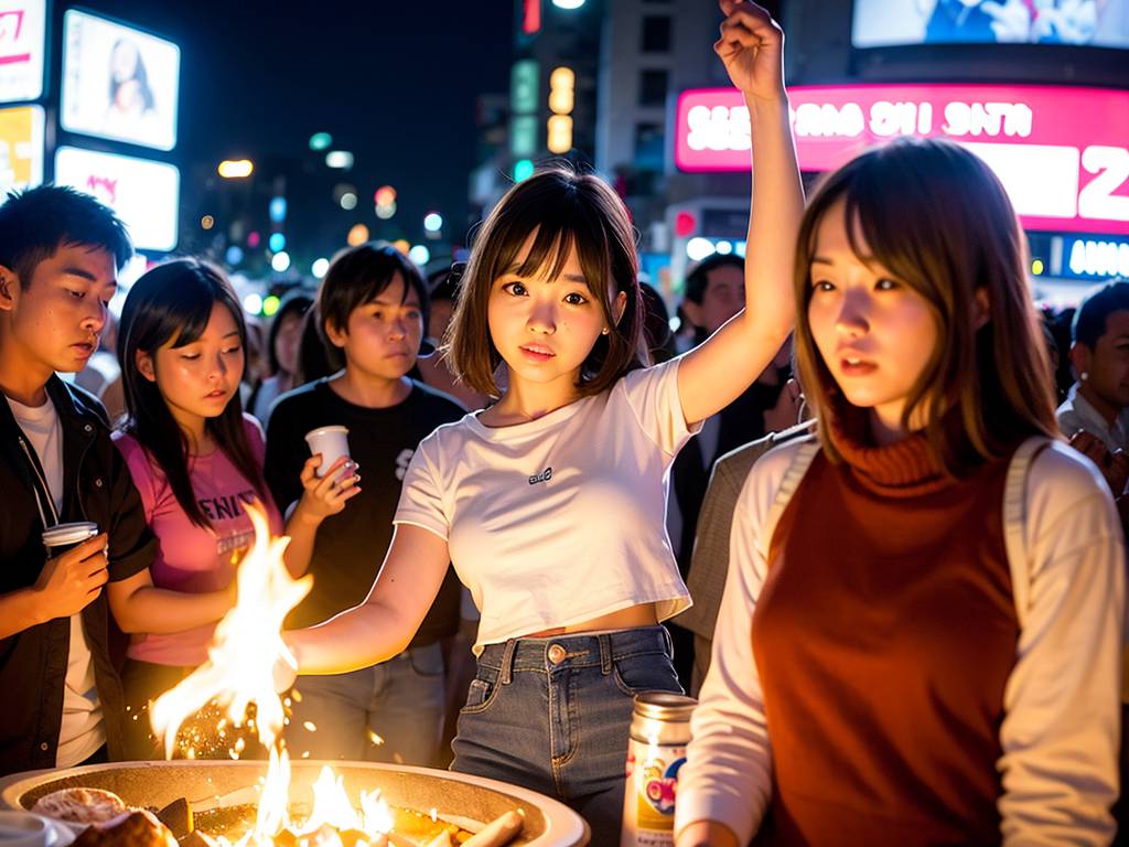 夜の都会で、キャンプファイヤをする女子 愛知県 西尾市 ストリートスナップ