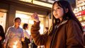 夜の都会で、キャンプファイヤをする女子 山口県 岩国市 ストリートスナップ