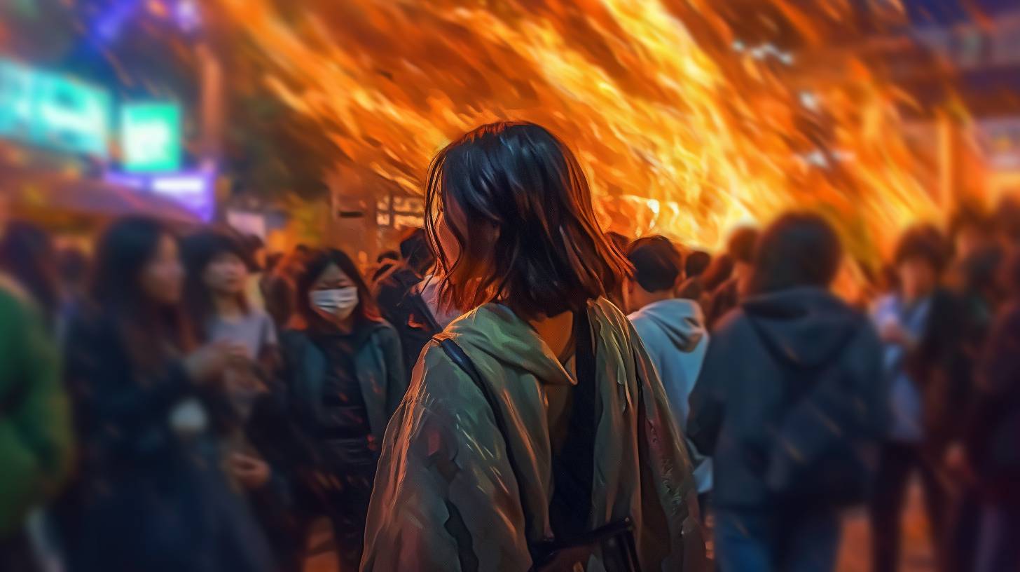 夜の都会で、キャンプファイヤをする女子 京都府 舞鶴市 ストリートスナップ