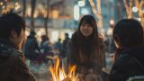 夜の都会で、キャンプファイヤをする女子 愛知県 田原市 ストリートスナップ