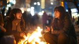 夜の都会で、キャンプファイヤをする女子 佐賀県 伊万里市 ストリートスナップ