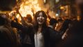 夜の都会で、キャンプファイヤをする女子 岡山県 倉敷市 ストリートスナップ