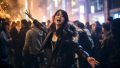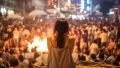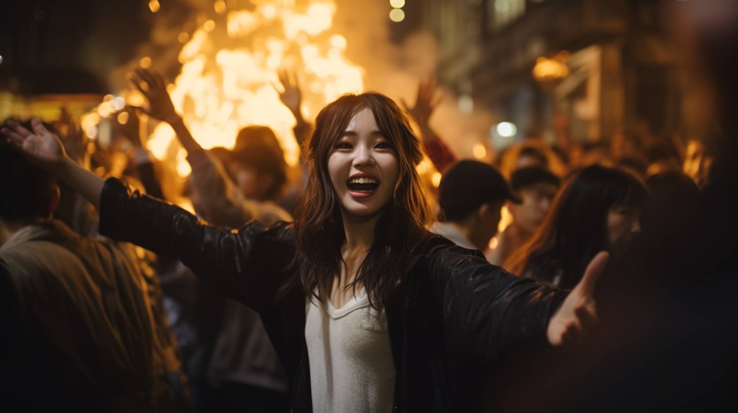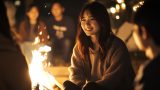夜の都会で、キャンプファイヤをする女子 兵庫県 高砂市 ストリートスナップ