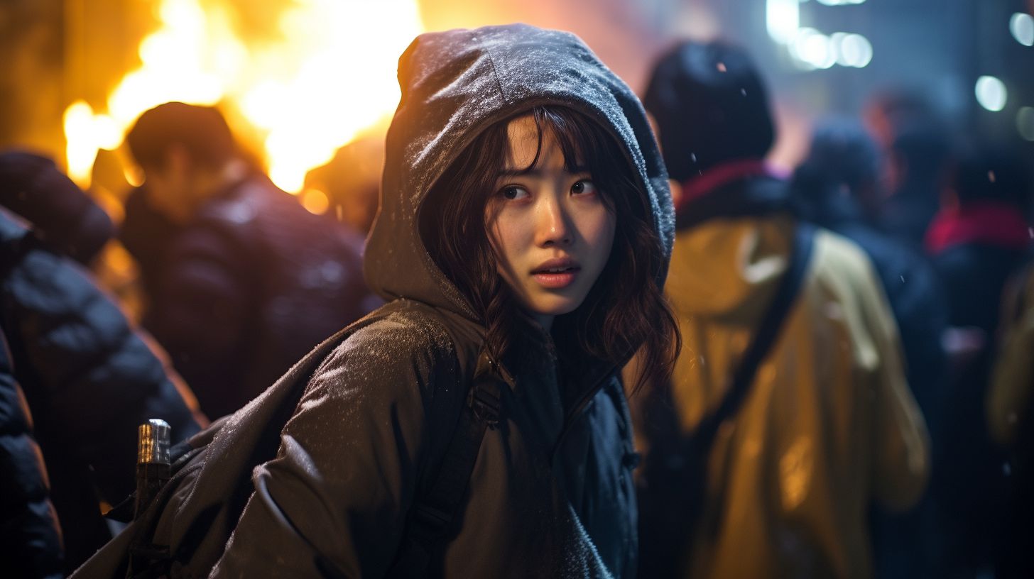 夜の都会で、キャンプファイヤをする女子 東京都 国立市 ストリートスナップ