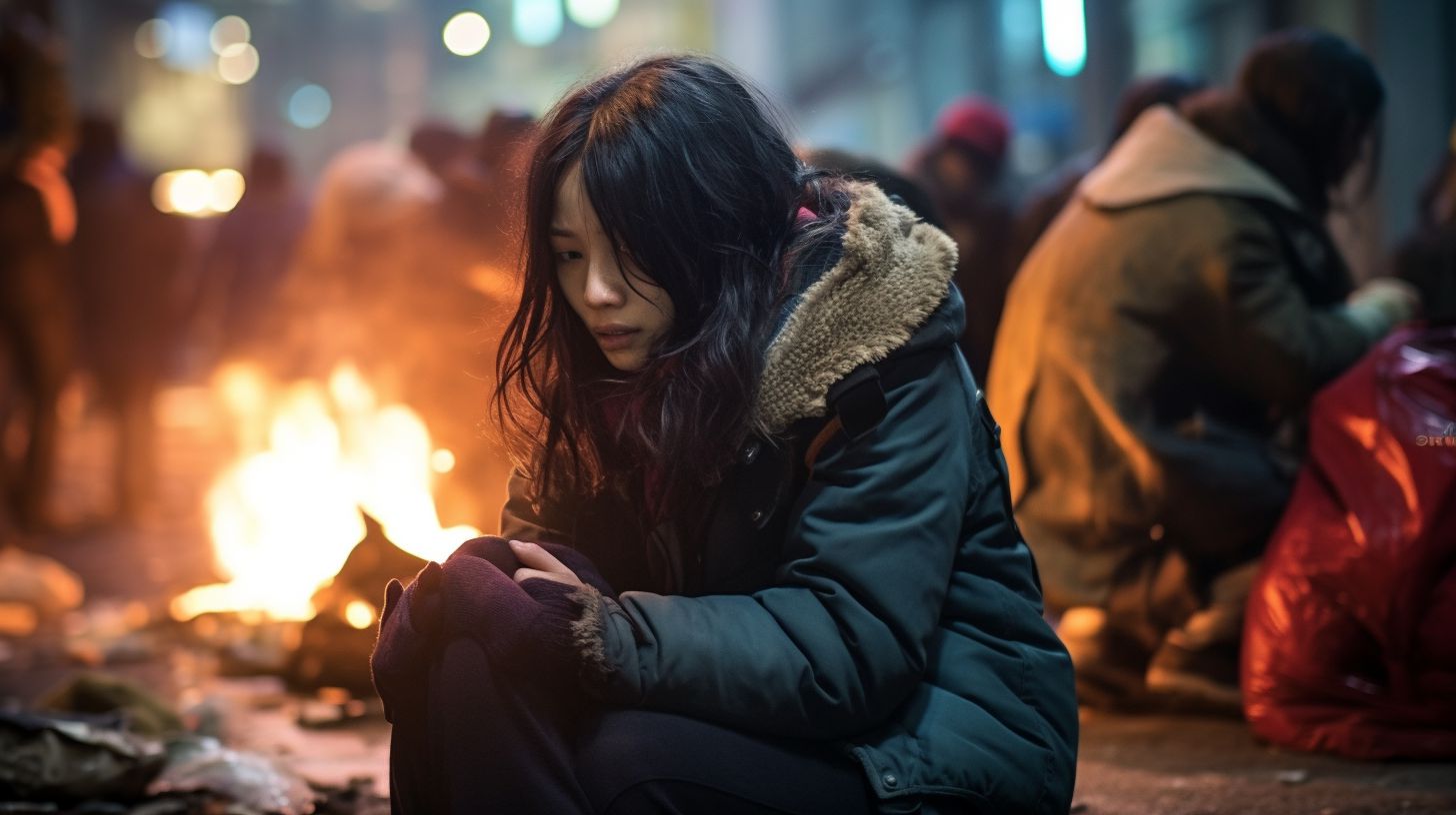 夜の都会で、キャンプファイヤをする女子 熊本県 熊本市 ストリートスナップ