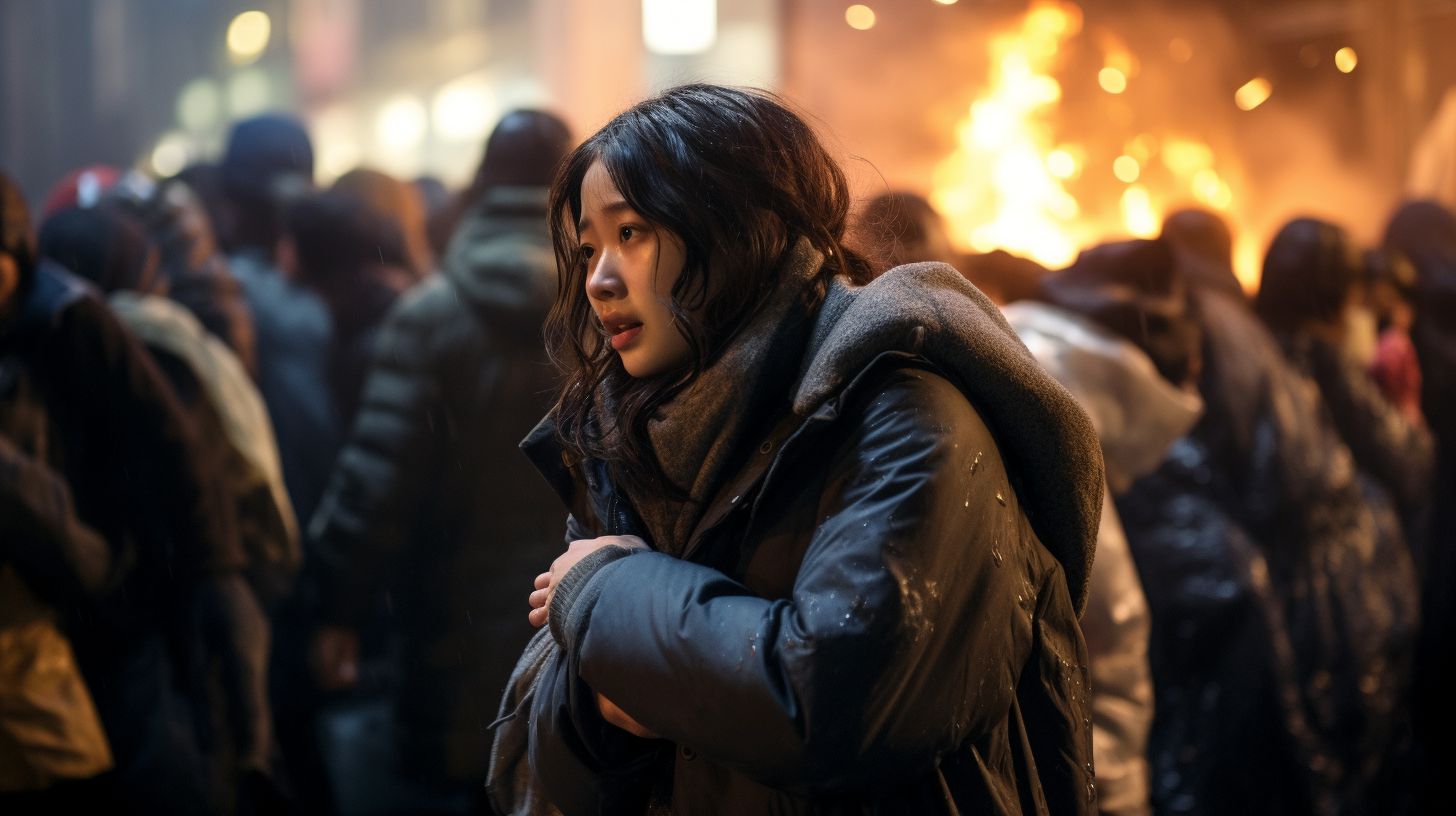 夜の都会で、キャンプファイヤをする女子 島根県 松江市 ストリートスナップ