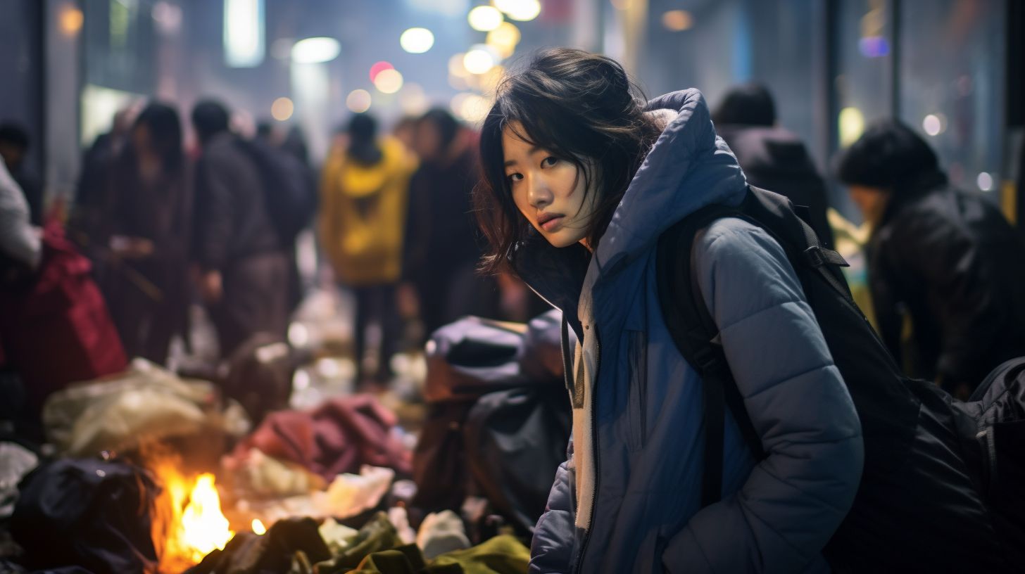 夜の都会で、キャンプファイヤをする女子 埼玉県 深谷市 ストリートスナップ
