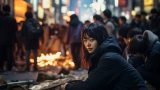 夜の都会で、キャンプファイヤをする女子 埼玉県 上尾市 ストリートスナップ