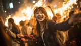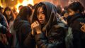 夜の都会で、キャンプファイヤをする女子 岐阜県 多治見市 ストリートスナップ