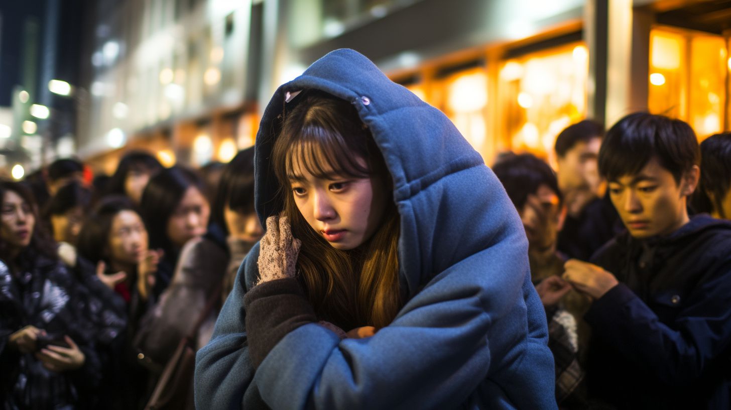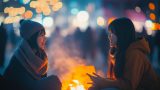 夜の都会で、キャンプファイヤをする女子 秋田県 大仙市 ストリートスナップ