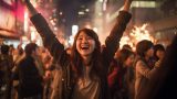 夜の都会で、キャンプファイヤをする女子 千葉県 千葉市 ストリートスナップ