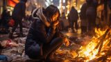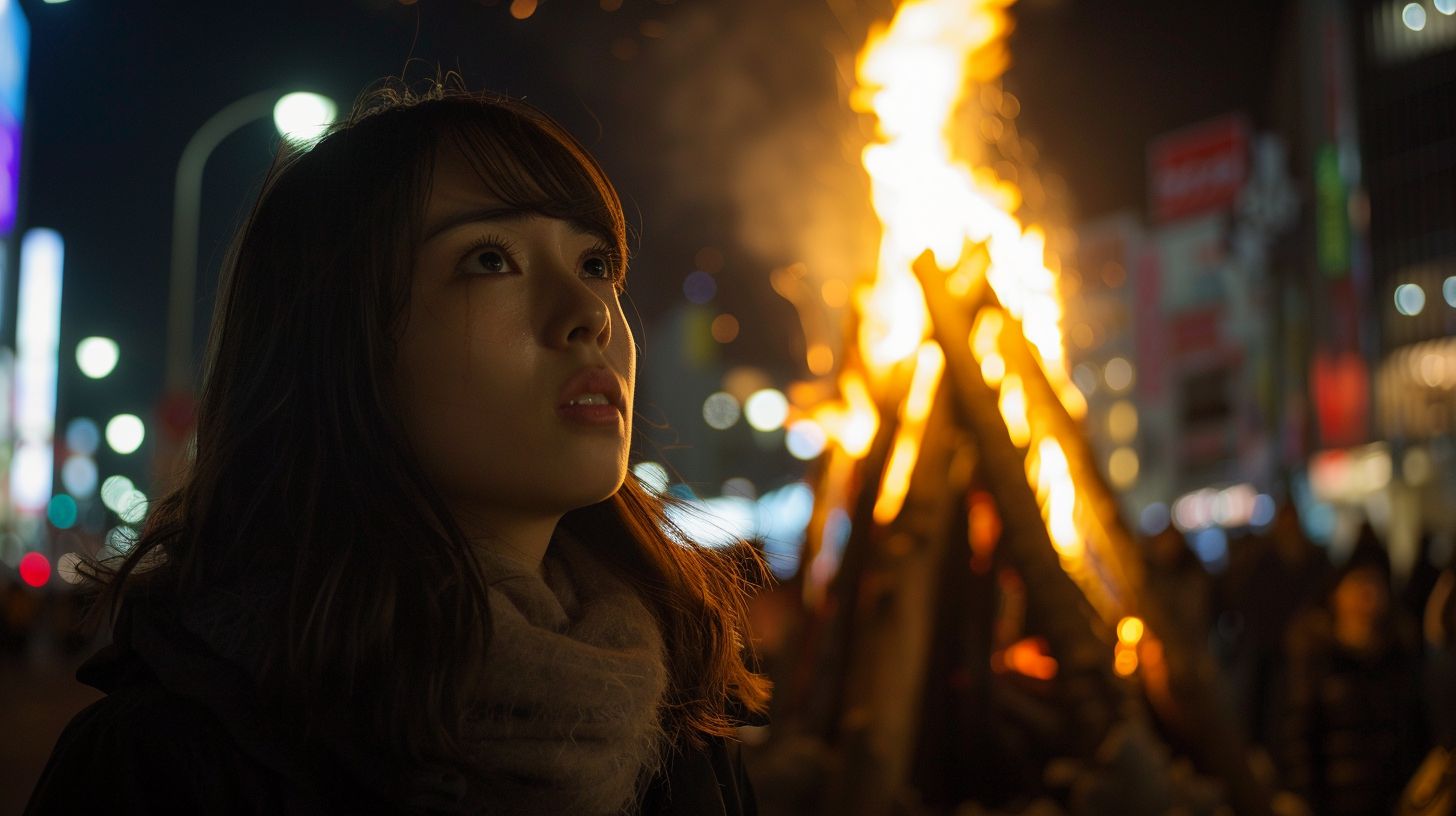 夜の都会で、キャンプファイヤをする女子 福岡県 大野城市 ストリートスナップ