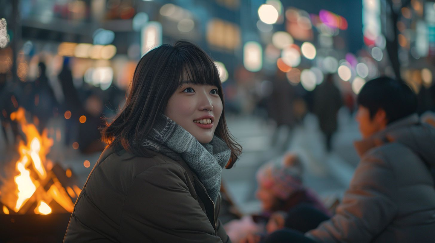 夜の都会で、キャンプファイヤをする女子 兵庫県 芦屋市 ストリートスナップ