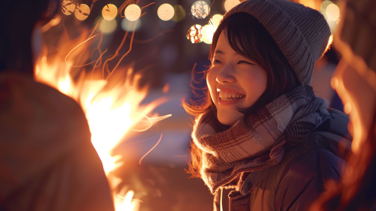 夜の都会で、キャンプファイヤをする女子 鹿児島県 霧島市 ストリートスナップ