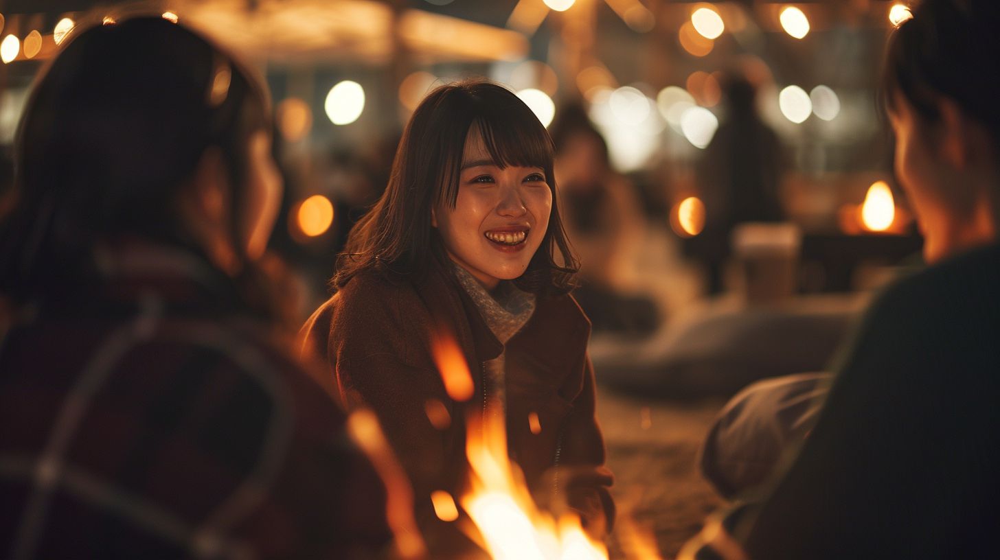 夜の都会で、キャンプファイヤをする女子 岐阜県 中津川市 ストリートスナップ