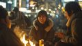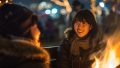 夜の都会で、キャンプファイヤをする女子 長野県 千曲市 ストリートスナップ