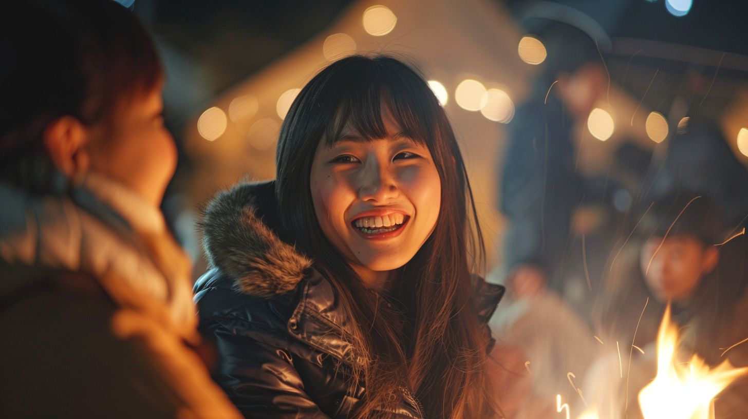 夜の都会で、キャンプファイヤをする女子 福岡県 大牟田市 ストリートスナップ