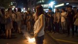 夜の都会で、キャンプファイヤをする女子 和歌山県 和歌山市 ストリートスナップ