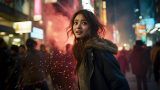 夜の都会で、キャンプファイヤをする女子 山形県 鶴岡市 ストリートスナップ