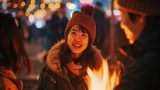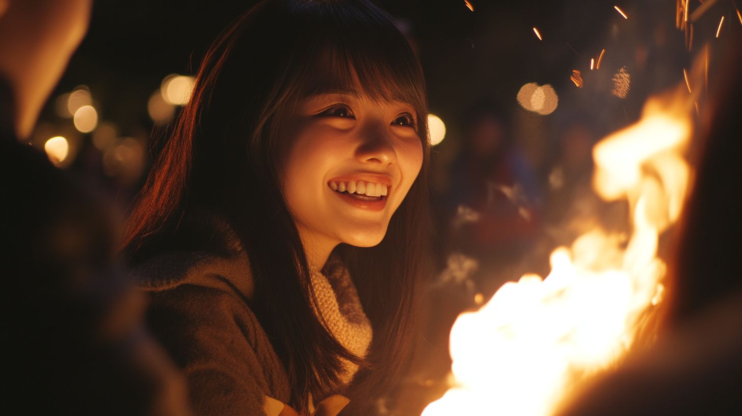 夜の都会で、キャンプファイヤをする女子 東京都 西東京市 ストリートスナップ