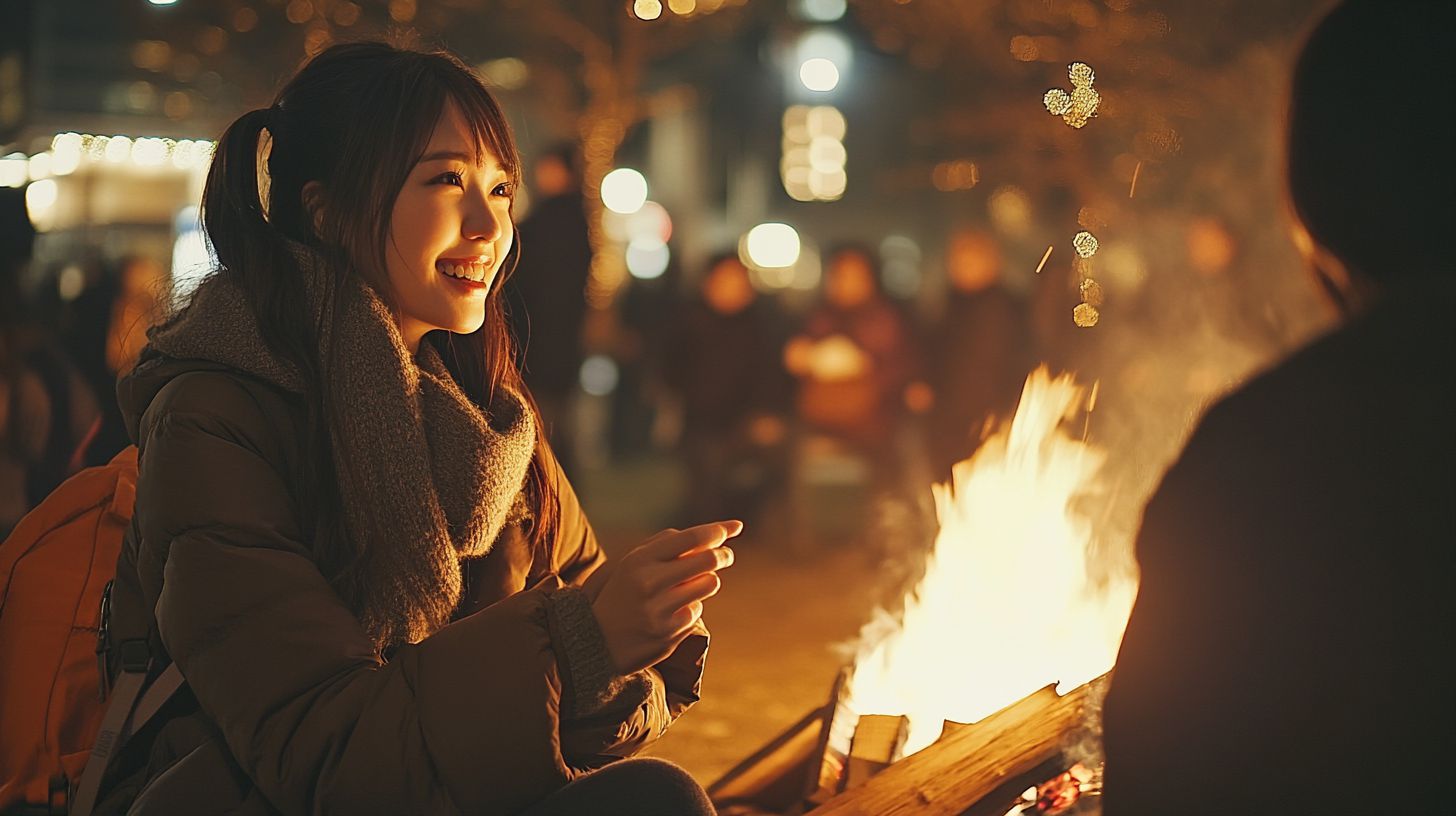 夜の都会で、キャンプファイヤをする女子 岩手県 滝沢市 ストリートスナップ