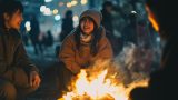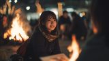 夜の都会で、キャンプファイヤをする女子 神奈川県 逗子市 ストリートスナップ