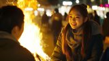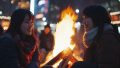 夜の都会で、キャンプファイヤをする女子 大阪府 門真市 ストリートスナップ