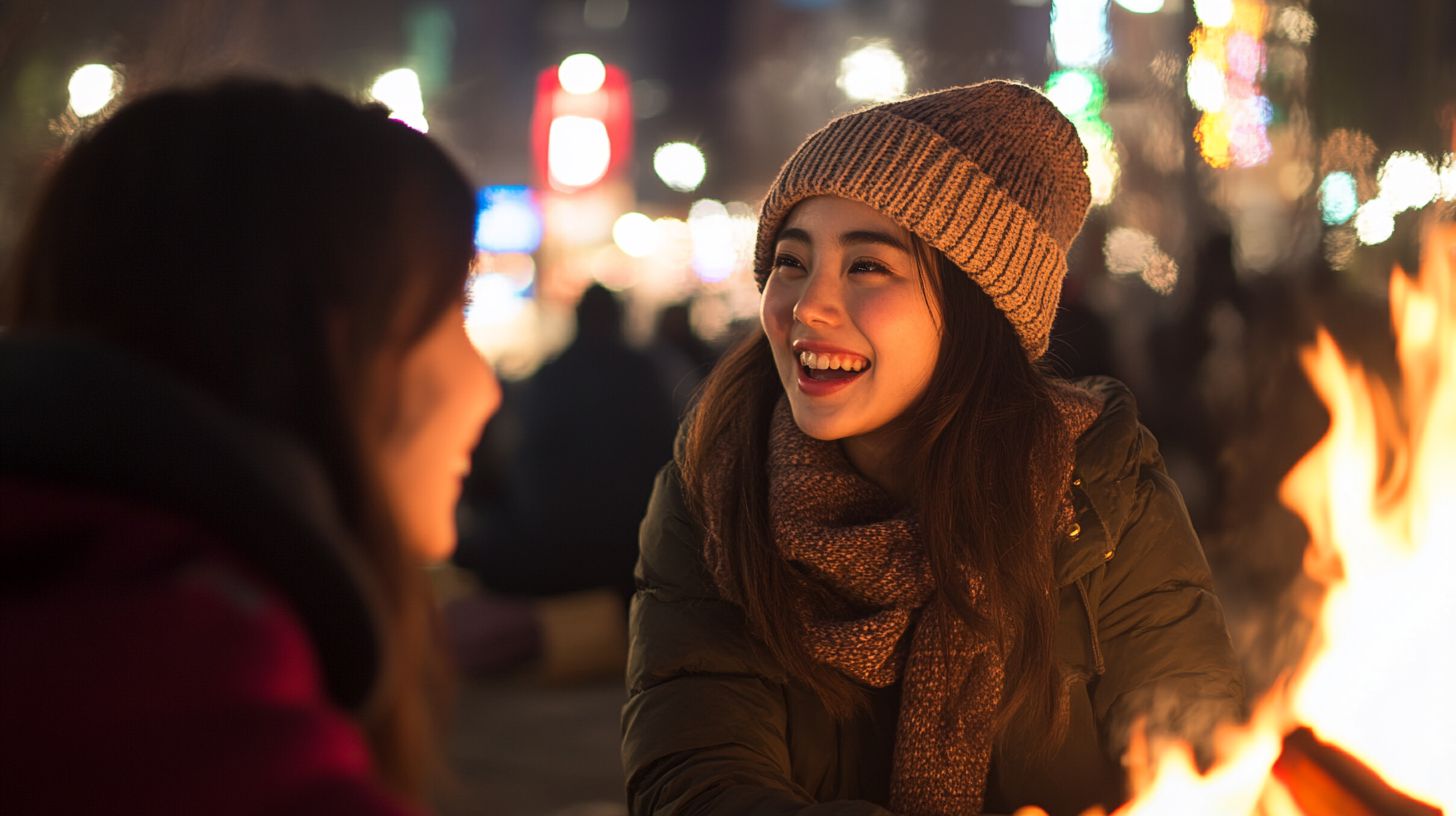 夜の都会で、キャンプファイヤをする女子 岡山県 玉野市 ストリートスナップ