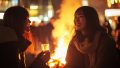 夜の都会で、キャンプファイヤをする女子 新潟県 新潟市 ストリートスナップ