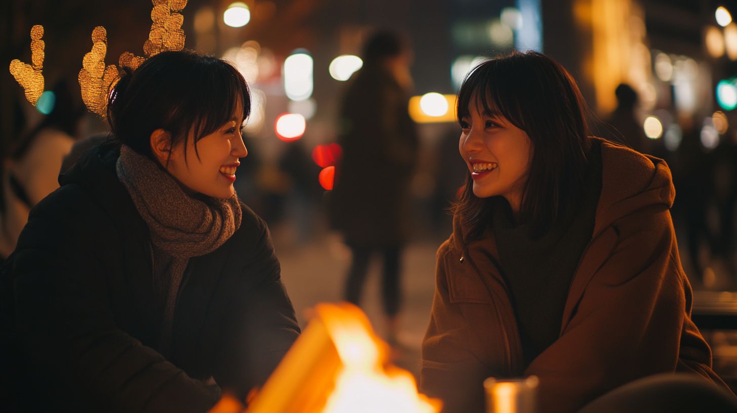 夜の都会で、キャンプファイヤをする女子 奈良県 香芝市 ストリートスナップ
