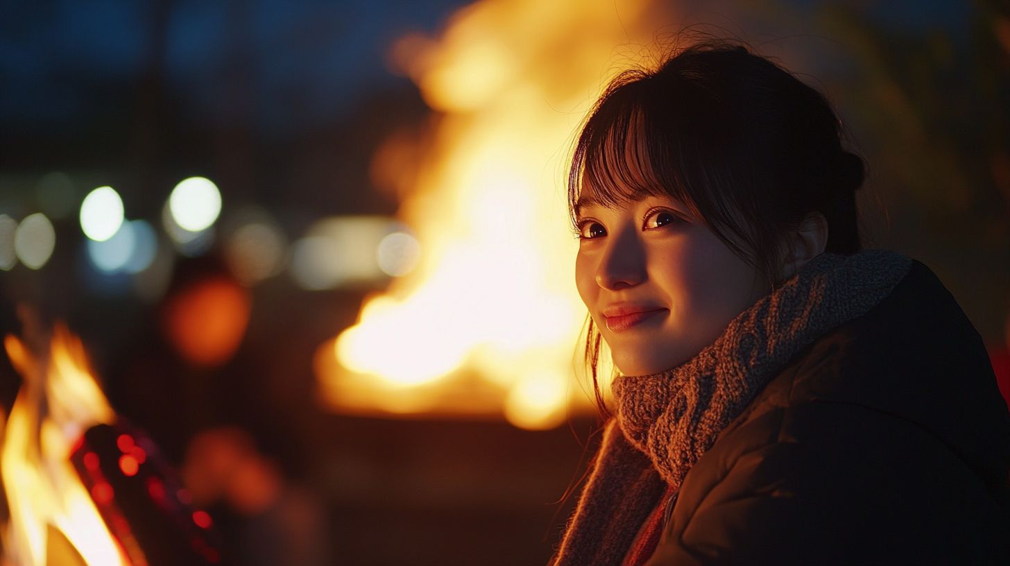 夜の都会で、キャンプファイヤをする女子 静岡県 焼津市 ストリートスナップ