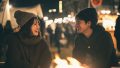 夜の都会で、キャンプファイヤをする女子 東京都 三鷹市 ストリートスナップ