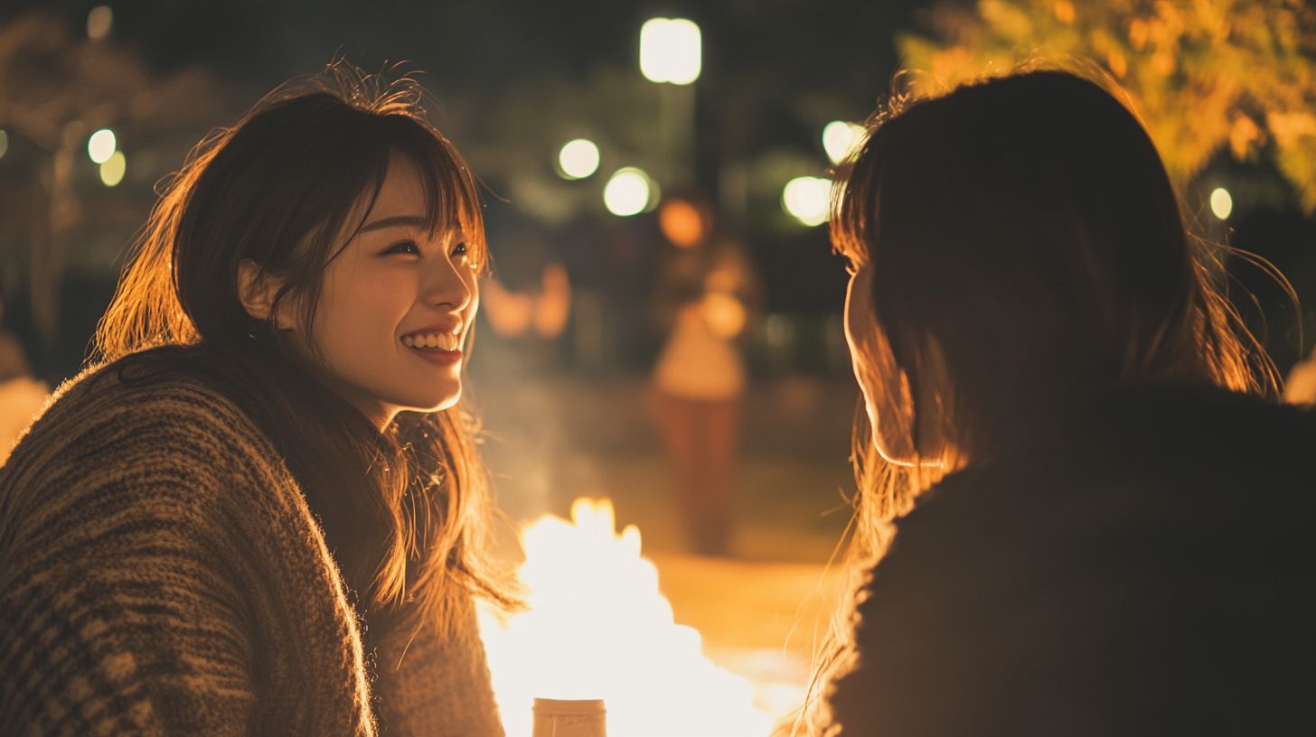 夜の都会で、キャンプファイヤをする女子 愛知県 豊田市 ストリートスナップ