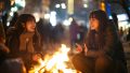 夜の都会で、キャンプファイヤをする女子 石川県 小松市 ストリートスナップ