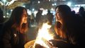 夜の都会で、キャンプファイヤをする女子 東京都 北区 ストリートスナップ