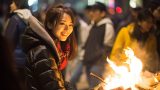 夜の都会で、キャンプファイヤをする女子 三重県 松阪市 ストリートスナップ