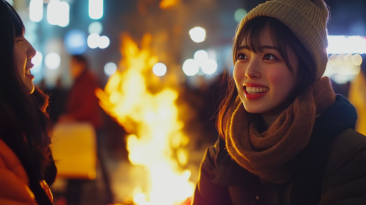 夜の都会で、キャンプファイヤをする女子 愛知県 名古屋市 ストリートスナップ