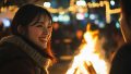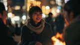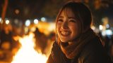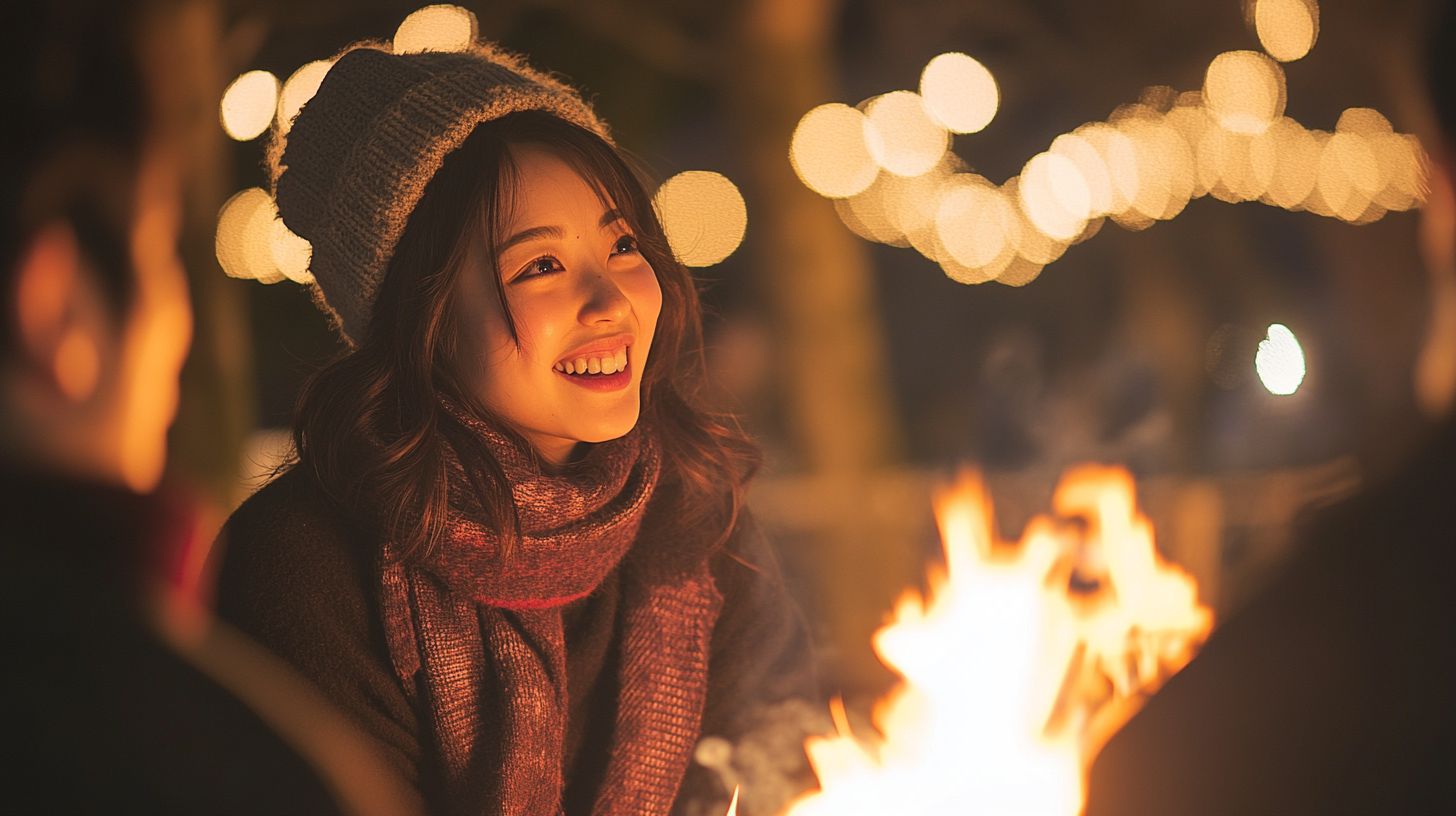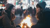夜の都会で、キャンプファイヤをする女子 千葉県 銚子市 ストリートスナップ