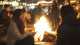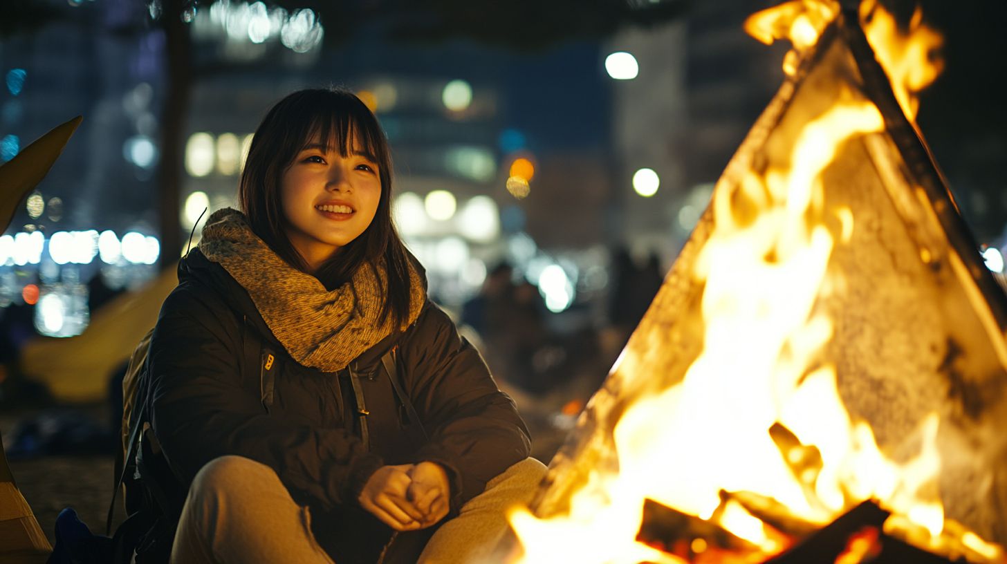 夜の都会で、キャンプファイヤをする女子 岩手県 一関市 ストリートスナップ