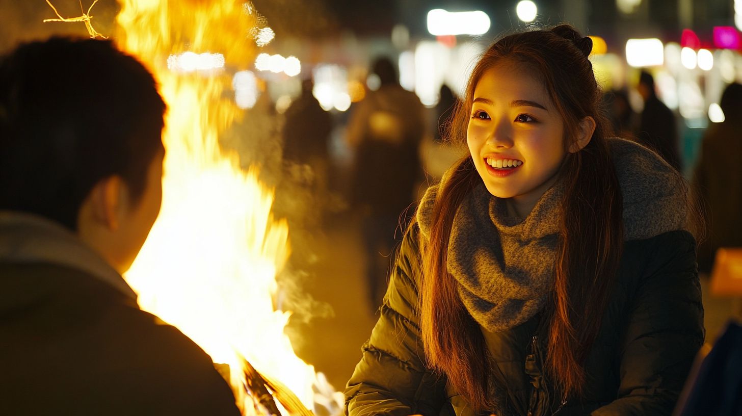 夜の都会で、キャンプファイヤをする女子 静岡県 袋井市 ストリートスナップ