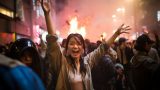 夜の都会で、キャンプファイヤをする女子 千葉県 印西市 ストリートスナップ