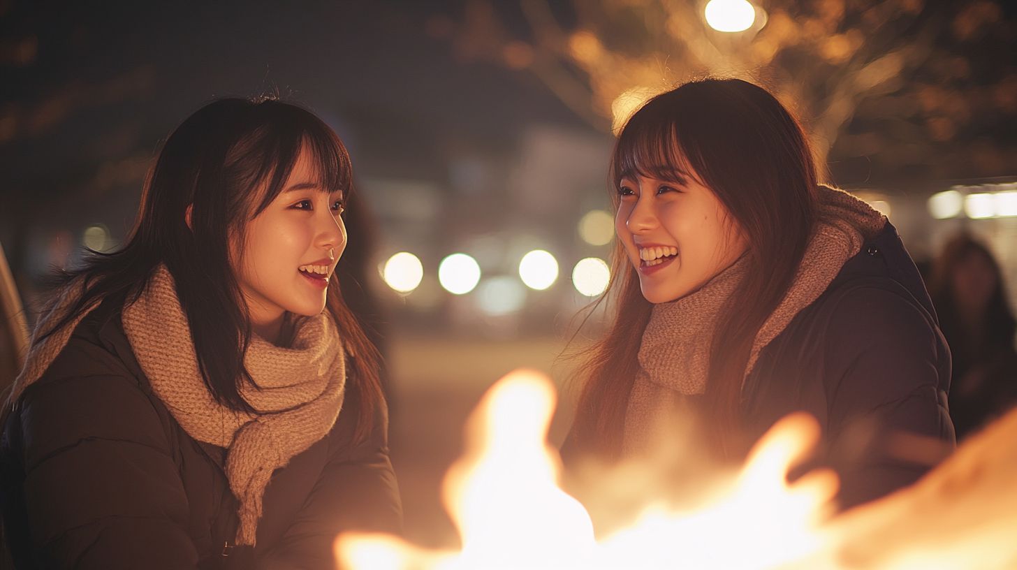 夜の都会で、キャンプファイヤをする女子 徳島県 鳴門市 ストリートスナップ