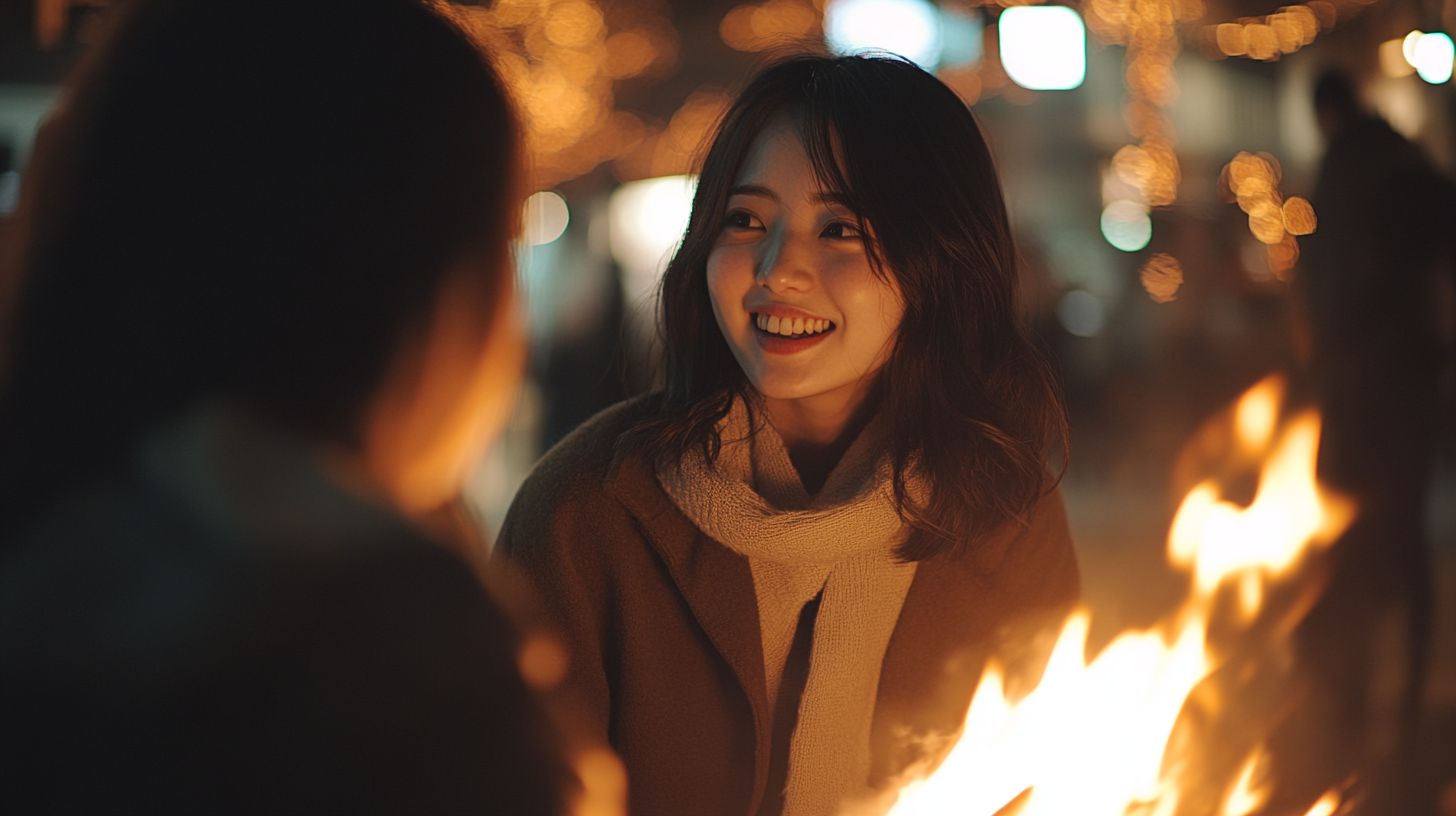夜の都会で、キャンプファイヤをする女子 埼玉県 川越市 ストリートスナップ