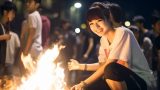 夜の都会で、キャンプファイヤをする女子 三重県 伊勢市 ストリートスナップ