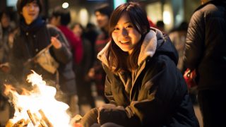 夜の都会で、キャンプファイヤをする女子 大阪府 四條畷市 ストリートスナップ